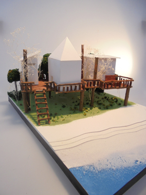 宮城県気仙沼市大島にある十八鳴浜(くぐなりはま)の森の中にツリーハウスを提案、五感で自然を感じられる動線の空間設計を行いました。