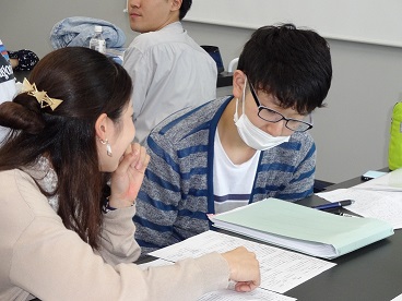 第2段階は、教員も加わった報告会です。本格的な学会にならって、パワーポイントを使ってプレゼンテーションをし、質疑応答を行います。目指す作業療法士のイメージが明確になってきているので、課題への取り組みは真剣そのものです。患者さんを笑顔にしたい!患者さんやご家族に寄り添った関わりがしたい!もっと知識や技術を高めたい!学生の熱い気持ちが伝わってくる学びの時間でした。