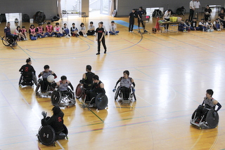 車いす同士が衝突する「タックル」が許可されている、激しく迫力のあるスポーツです。