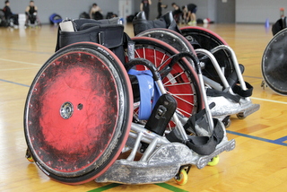 ウィルチェアーラグビーは、頸随損傷や機能障がいなど、主に四肢に障がいのある選手が行うパラリンピック競技で、耐久力の高い競技用車いすと、つかみやすく加工された専用のボールを使用します。