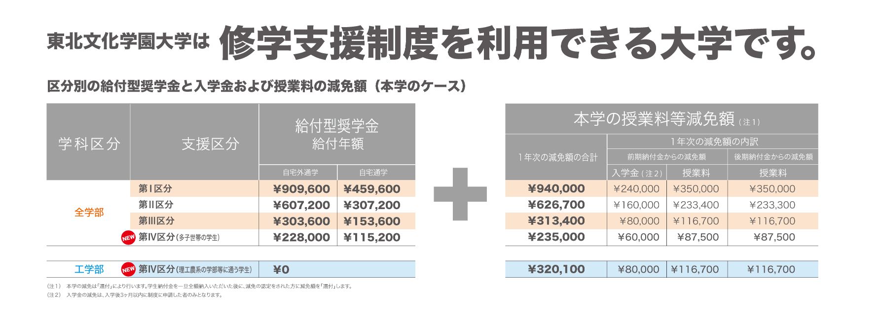 約295万円未満 (住民税非課税世帯) | 満額 | 入学金減免額 約260,000円 授業料減免額 約700,000円(年額) 給付型奨学金 約910,000円(年額) |