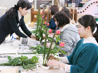 初めて触れる生け花の世界、個別に先生の指導を受けながら、医療秘書としてふさわしい教養を身に付けていきます。