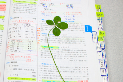 医療事務の勉強で大切な、点数本にはさめて押し花にしました。