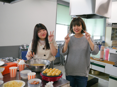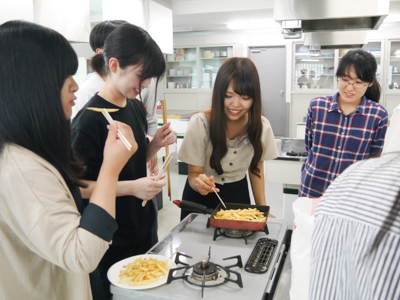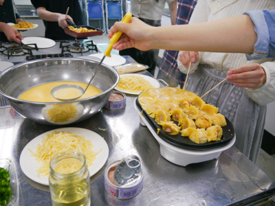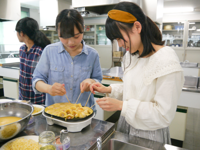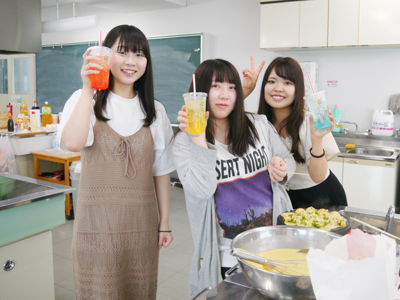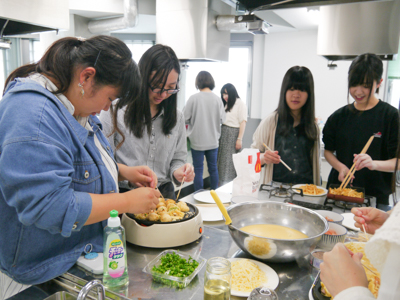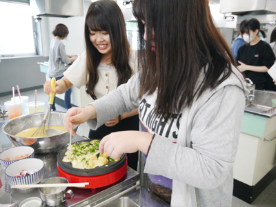 校舎内にある調理実習室で。企画、買い物から段取りまで自主的に進めました。