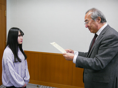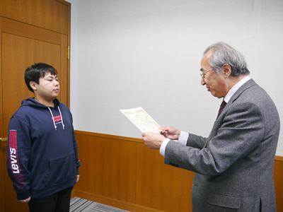 校長室にて表彰されました。