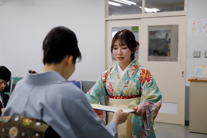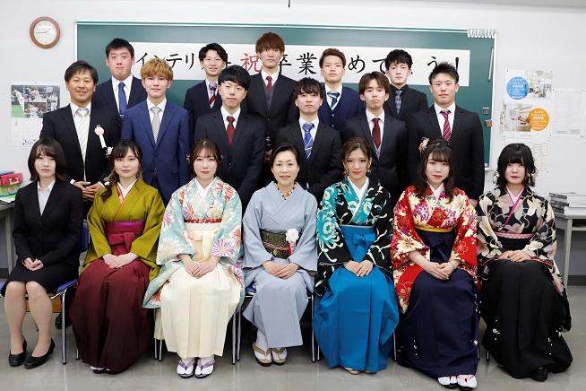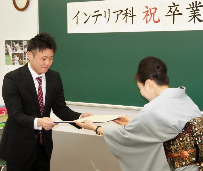 ホームルームの教室で証書を受取りました。就職先の研修などで出席できない人もいましたが、笑顔で卒業を迎えることができました。
