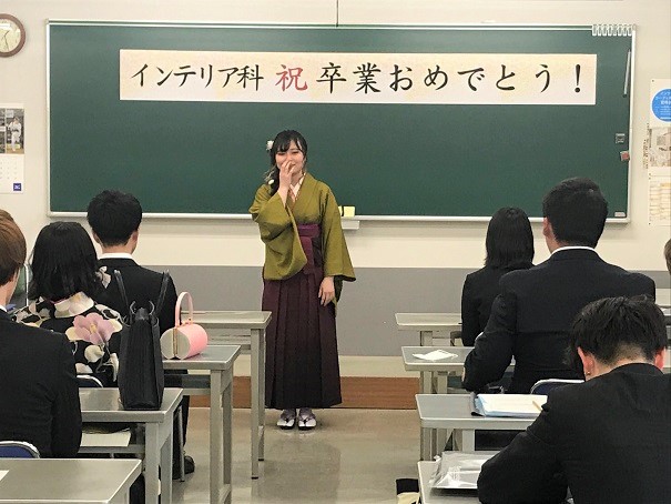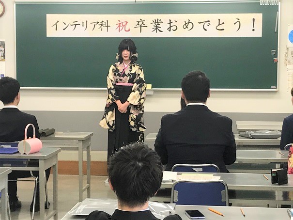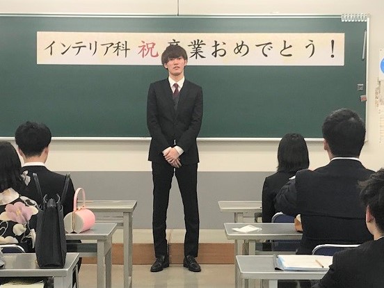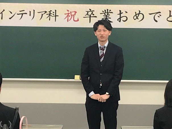 インテリア科の増田科長からはスマホに「はなむけの言葉」が贈られました。災害と無関係で生きることが難しいこれからの時代、毎日を大切に生きていきたいですね。