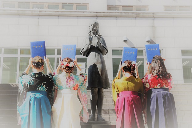 3月18日水曜日は快晴でした。新型コロナウィルスへの対策として卒業式は科ごとの証書授与式となりましたが、短い時間でも、想い出に残るひと時となりました。