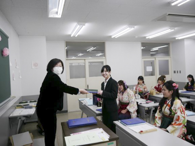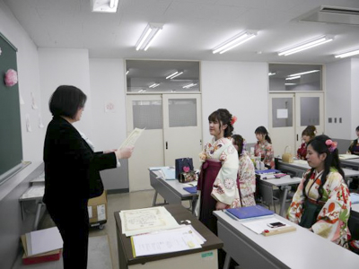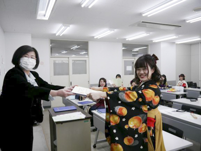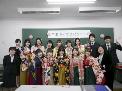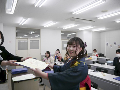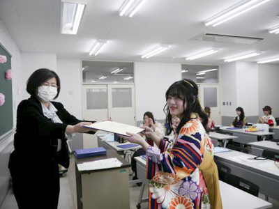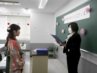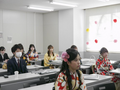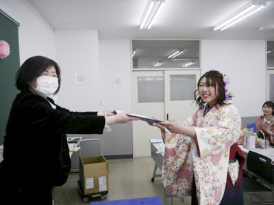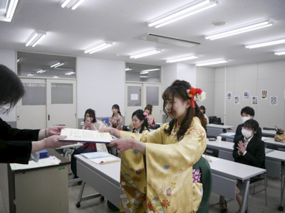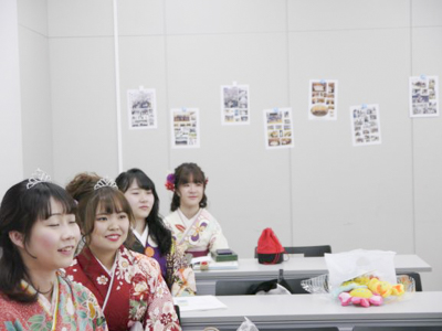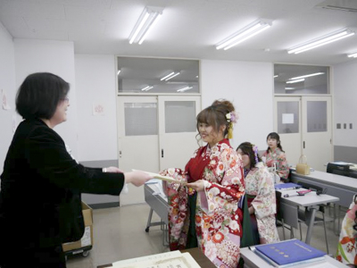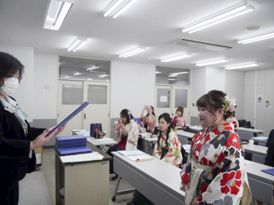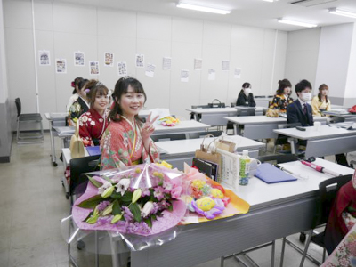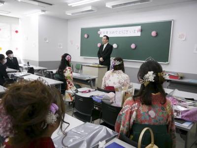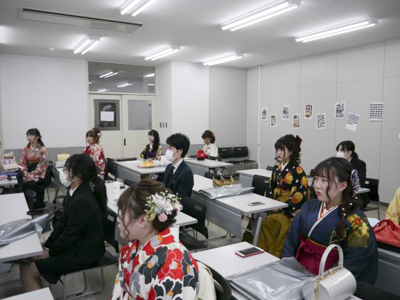 保護者の方に見ていただけなかったのは残念ですが、晴れ着を着た学生たちの顔はみな輝いていました。