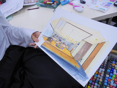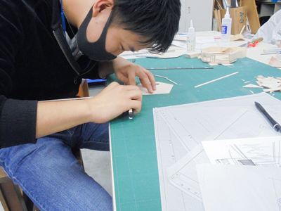 インテリア科2年生では、有志によるメンバーを募りコンペ(作品設計競技会)に挑戦するため、作品を制作中です。