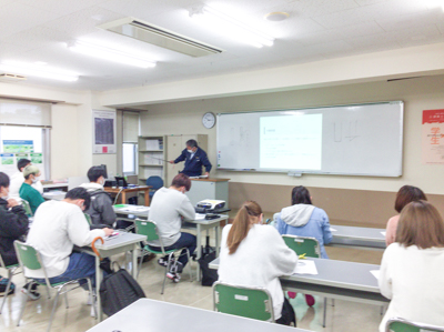 講習会では、学生は講師の説明を真剣に聞いていました。最後に行われた効果測定試験も全員難なくクリアーいたしました。