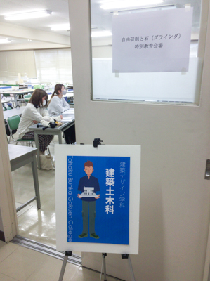 10月11日に建築土木科では『自由研削砥石(グラインダ)特別教育講習会』を開催いたしました。今年はコロナ禍で予定した講習ではなく短時間で修了する内容のものへ変更して開催しました。