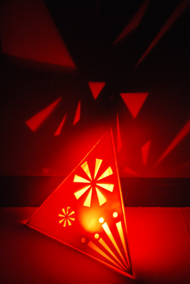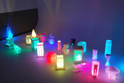 光源がどのように見えるか、全体のデザインのバランスがとれているかなど各自綿密に計算して立体の照明作品を制作しています。