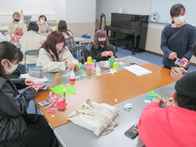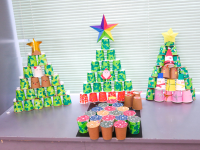 社会福祉科の生活アクティビティ(金野麻衣先生)の授業を通して、クリスマス企画として、身近にある物を使いクリスマス気分を盛り上げるクリスマス飾りを作りました。