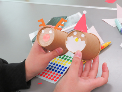 身近にある限られた物で、センスの良い飾りを作るのは意外と難しいものです。しかしながら、見ているだけで楽しいクリスマス飾りのオーナメント作成となりました。今回の授業の企画は、コロナ禍の自粛ムードの中でも、クリスマスのムードをさらに高めてくれました。