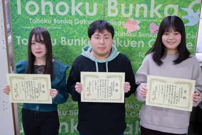 2級は、全国631人、3級は2088人の合格者の中から、本科からは佐藤花さん(2年)、小林澪奈さん(1年)の2名が成績優秀賞を受賞しました。