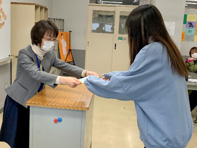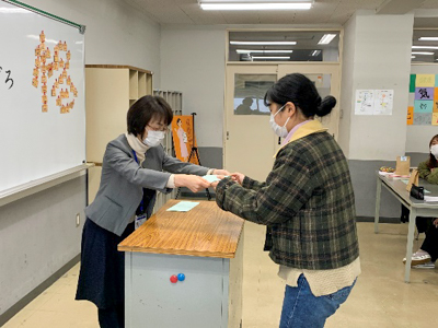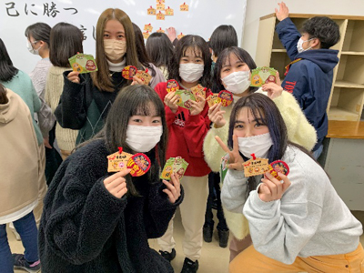 先生方のありがたいお言葉と、渡される合格グッズの数々。マスクや消毒、カイロに入浴剤・・。教員の愛は海よりも深し。