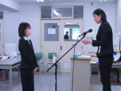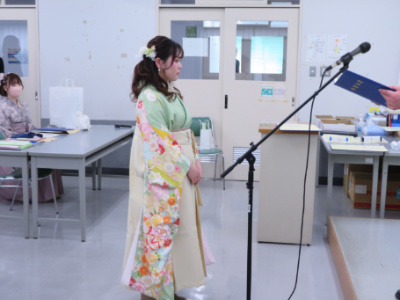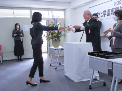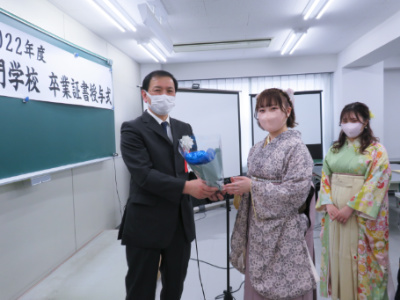 最初は23 分間で二年間を動画で振り返りました。三年ぶりに開催された学園祭のこと、コロナ禍での現場実習のことなど、映像の一コマ一コマは、つい昨日のことのように鮮明に蘇り卒業式の雰囲気を演出してくれました。その後、一人一人に担任から卒業証書の配布が行われました。