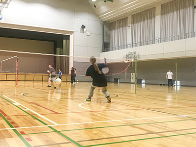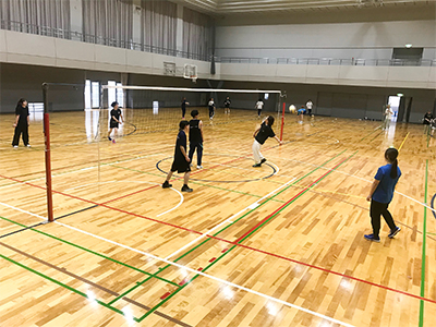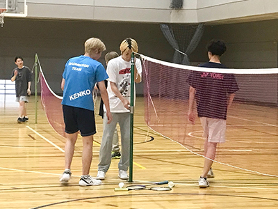 明日から夏休み!という7月21日(金)午後、体育館でクラスのスポーツイベントを開催しました。最初に準備体操をし、水分補給等の注意を受けた後、力を併せてネットなどを張っていきました。