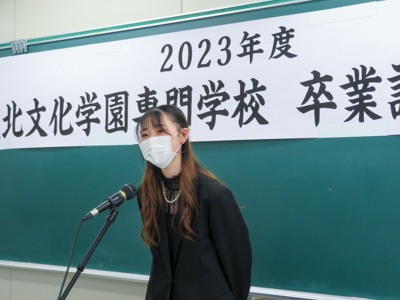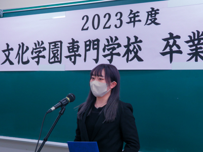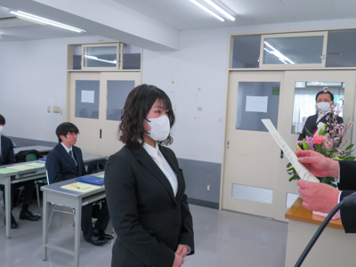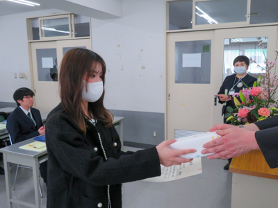 最初は22 分間で二年間を動画で振り返りました。四年ぶりに一般公開で開催された学園祭のこと、現場実習のことなど、映像の一コマ一コマは、つい昨日のことのように鮮明に蘇り卒業式の雰囲気を演出してくれました。その後、一人一人に担任から卒業証書の配布が行われました。