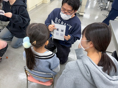検査中、学生たちは愛らしい園児たちにすっかりメロメロ。