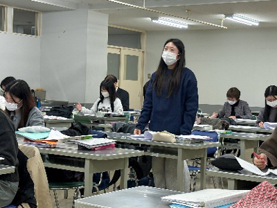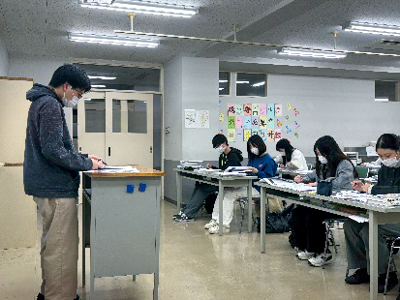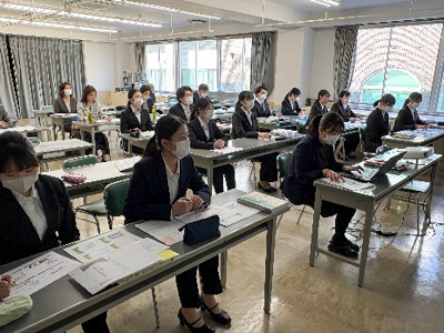教育課程編成委員会の先生方や校長先生にもご聴講いただく中、学生たちは緊張モード。