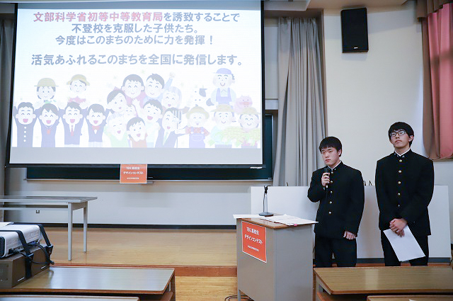 | 2 | 仙台市立仙台工業高等学校 | 世界の波に乗るために | 吉田 佳祐 萩澤 歩夢 |