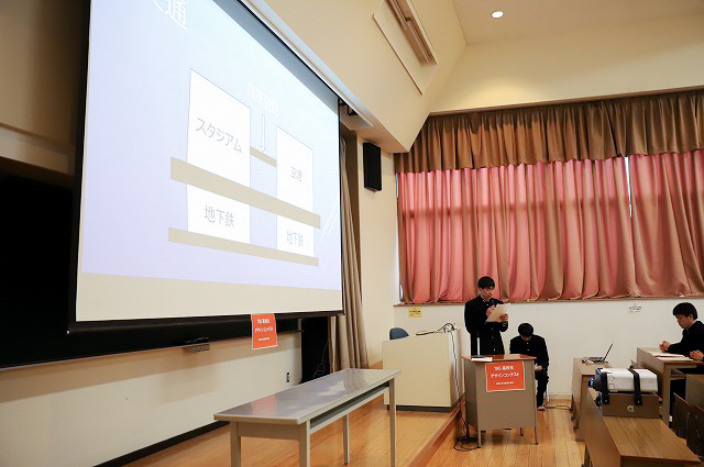 この日の最終審査では、1次審査を通過した「まち」「いす」両部門12作品の公開プレゼンテーションが行われ、1位~3位までを決定しました。「発表を待つ間、体が震えるようでした」とその時の緊張を語る高校生たちだが、本番では、緊張とは裏腹に、堂々としたプレゼンテーションを披露していました。
