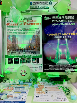 世界緑内障週間にあわせ『ライトアップinグリーン運動』を開催中です