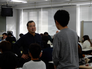 学生と対話しながら講話が進みます。