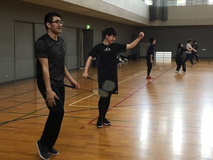その中でも必修科目健康スポーツ実習は体力測定から始まり、バトミントン、卓球、バレーボール、バスケットボール、フィットネスなど様々な種目を体験して体を動かして体力づくりを行います。