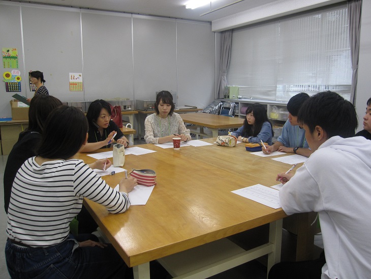 卒業生の方が丁寧に、3年生の実習に対する不安や悩み、疑問を聞いてくれます。