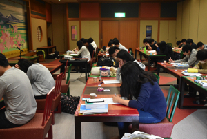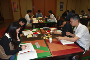 この日は23:30まで延々勉強漬けの一日となりました!学生同士で教え合う姿も見られます。