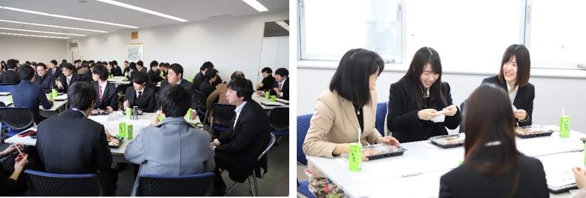 教員と一緒に「シューカツ(=就勝)弁当」をいただきました!