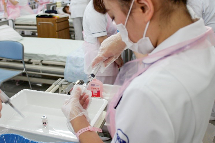 今回は、基礎看護の授業から、注射の演習をご紹介させていただきます。