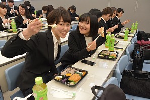 最後はみんなで美味しい「就活弁当」を食べて、