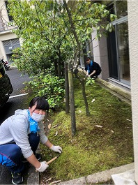 普段はあまりやったことのない、草取り等を行ったため、普段使わない筋肉を使い疲労も感じながら、楽しく行っています。