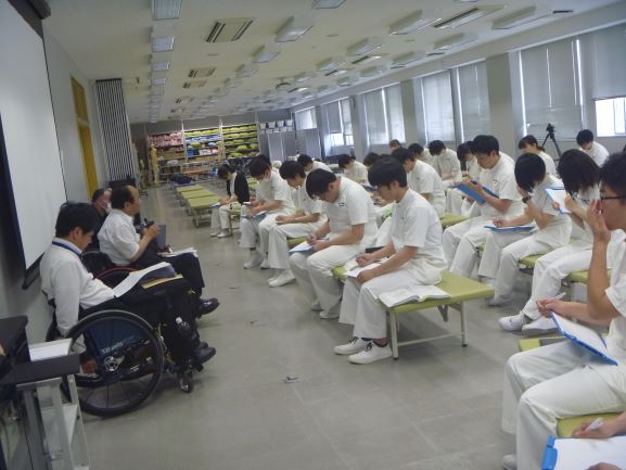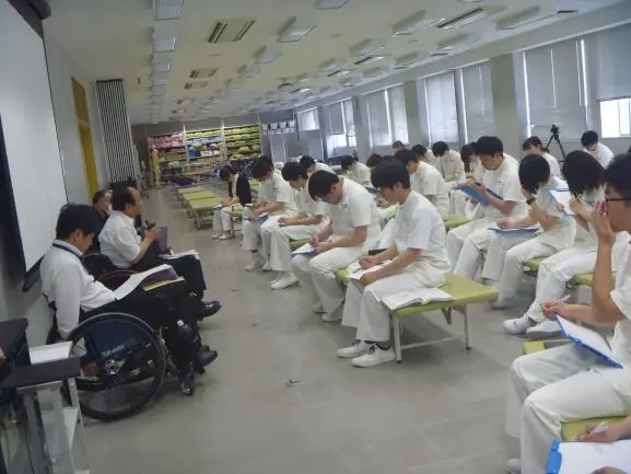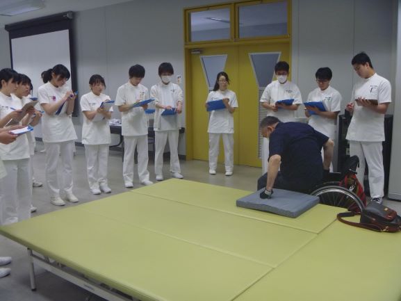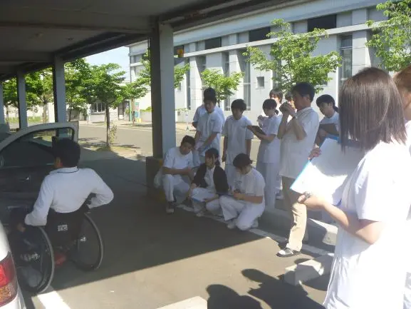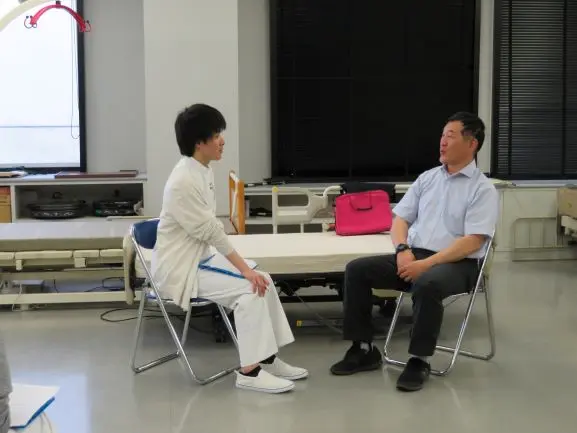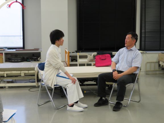 授業では、クラスメイト同士での練習が多くなりますが、脳卒中の方や脊髄損傷協会の方にご協力頂き、実際に面接や観察などの体験もさせて頂いています。