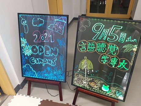 言語聴覚学専攻の看板。今回は澁谷先生が描いてくださいました。