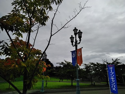 秋の気配も感じられる今日この頃です。国見の丘は肌寒さを感じる天候で、木の葉も一部色づき始めていました。