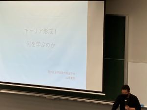 金曜日は本学科の軸ともいえる科目キャリア形成と基礎ゼミが続けてあります。