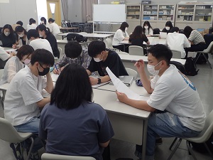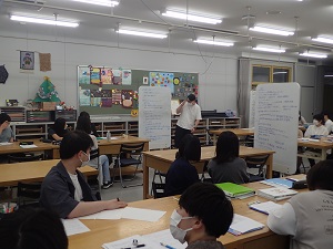 同じ疾患でも、症例によって症状や対応の仕方が異なるので、まずは同じ領域(身体障害・老年期・精神障害など)で実習した学生間で、体験したことを共有しあい、知識を確かめ合う話し合いが行われました。