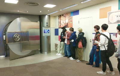 そうした授業の一環として10月21日(金)の午前にエクスカーションが実施されました。今回は第二講の「貨幣の歴史と金融」の検証を兼ねて、仙台市内中心部にある七十七銀行本店内にある金融資料館(仙台市青葉区中央三丁目3-20所在)を訪れました。