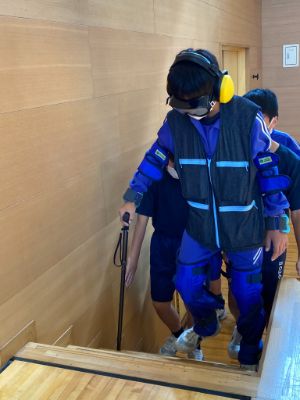 また、介助者の役割も体験してもらい、一つ一つの誘導や声掛けの大切さを感じてもらいました。