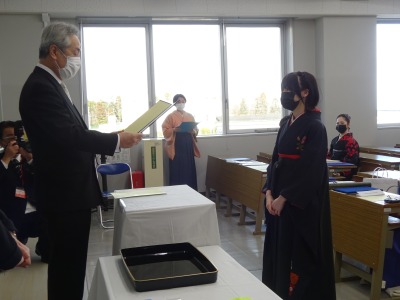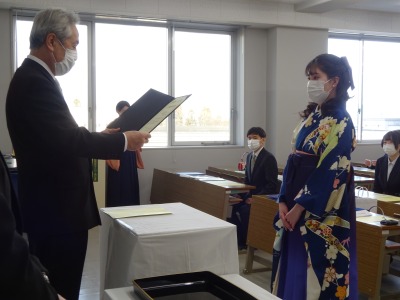 相澤学科長より、一人ひとりに学位記が手渡されました。