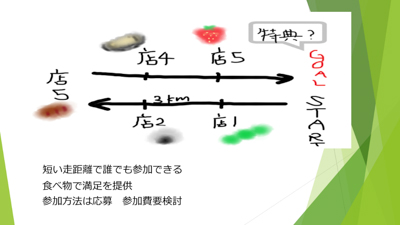 2つの提案「音楽フェスティバル」と「市民マラソン企画」についてゼミ生からプレゼンし、その後約1時間半に渡って活発な討議を行った。