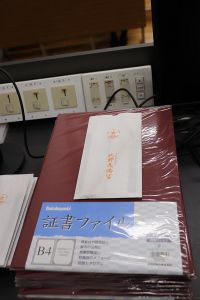 ・4年生へ支援品(賞状ホルダー、合格鉛筆(北野天満宮))の贈呈