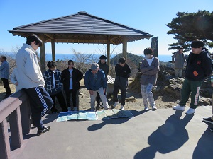天気が良く幸運にも山頂では美しい奥松島の海と航空自衛隊松島基地からのブルーインパルスの飛行訓練を見ることができました。