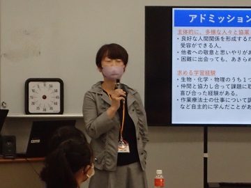 育成入試、自己アピール入試、指定校入試でそれぞれ合格した学生に、受験対策、受験の時のことを中心に話をしてもらいました。