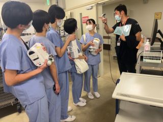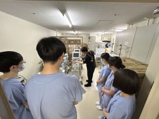 臨床工学技士の方から生命維持管理装置の操作や医療機器の保守点検の業務について詳しく説明を受け、